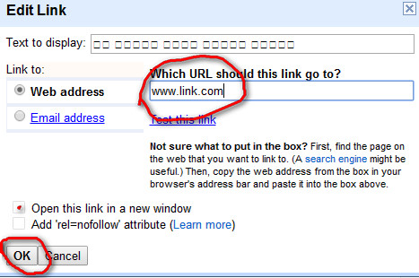 তারপর লিঙ্ক আইকনে ক্লিক করলে নিচের পেজ আসবে আর সেখানে লিঙ্ক দিয়ে ওকে চাপুন