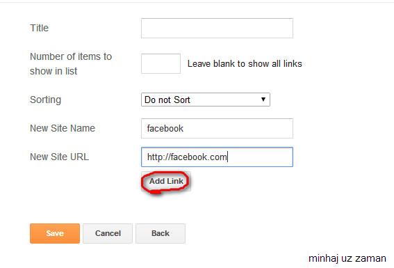 এবারে new site name এর যায়গায় নাম আর new site url এর যায়গায় link দিয়ে add link e ক্লিক করুন। এভাবে যতগুলা দরকার ততগুলা নিন। আমি চারটি নিয়েছি, নিচের মত