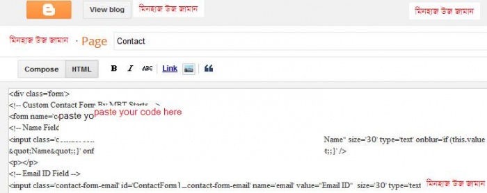 এবারে html এ ক্লিক করুন তাহলে নিচের মত আসবে।