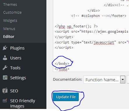 </body> খুজে বের করুন. </body> টেগের আগে আপনার পছন্দের বাটনের কোটটি পেষ্ট করুন. এরপর update file