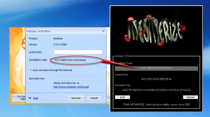 এবার কপি করা Installation Code কোড’টি Keygen এ্যাপ্লিক্যাশন’টির প্রথম অংশে পেষ্ট করে দিন তারপর লাইসেন্স কী এবং এ্যাক্টিভেশন কোড পেয়ে যাবেন।