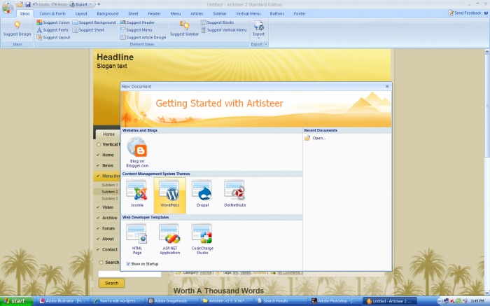 Artisteer প্রোগাম’টি চালু করুন এবং স্টার্ট-আপ থেকে জুমলা/ওয়ার্ডপ্রেস... নিবার্চন করুন তারপর বিভিন্ন ডিজাইনের তৈরী টেম্পলেট পাবেন এর ইচ্ছেমত এডিট করে বানিয়ে ফেলুন মনেরমত থিম সবশের্ষে এক্সপোর্ট করে থিম ডাউনলোড করতে পারবেন।