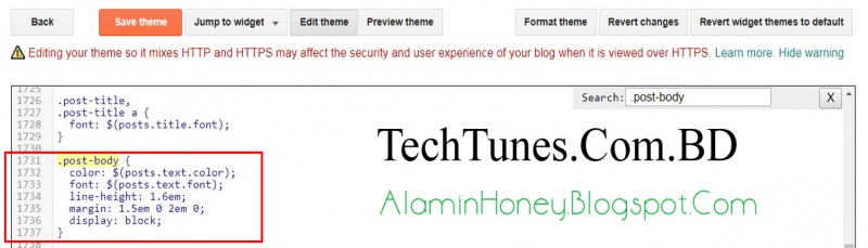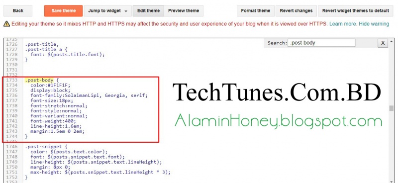 Go to Dashboard->TEMPLATE->EDIT HTML-> তারপর কীবোর্ড থেকে CTRL + F চেপে .post-body লিখাটা খুজে বের করুন। এবং নিচের ইমেজ টি লক্ষ করুন, এখানে লাল বর্ডার দিয়ে মার্ক করে দিয়েছি। ওইটুকু ডিলিট করে ফেলুন।