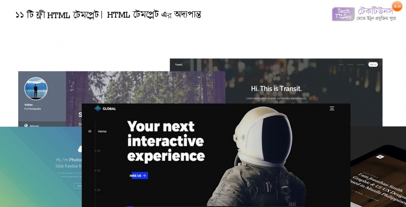 অনলাইন সিভি বা পোর্টফলিও সাইটের জন্য "ফ্লেক্স" ফ্রী HTML5 টেমপ্লেটটি ব্যবহার করতে পারেন। এই ফ্রী টেমপ্লেটে থাকছে ইমেজ গ্যালারি,স্লাইডার,ফিক্সড ফ্লোটিং মেনু সহ আরও অনেক কিছু।
