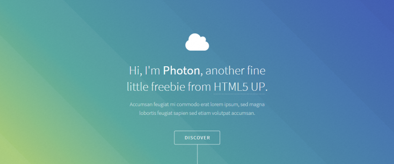 ফোটন একটি ওয়ান পেজ HTML5 টেমপ্লেট। এই টেমপ্লেট প্যারালাক্স ইফেক্ট এর সাথে ছবি যোগ করা যাবে এবং এই টেমপ্লেট এর বাটনে থাকছে সুন্দর হোভার ইফেক্ট।অনলাইন পোর্টফোলিও ওয়েবসাইটকে এক নতুন লুক দেয়ার জন্য এই টেমপ্লেট ব্যবহার করতে পারেন।