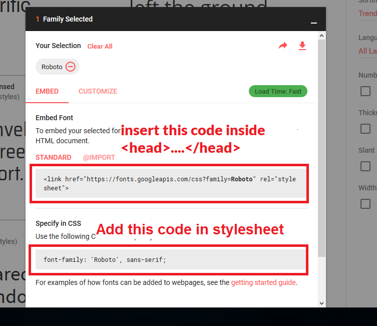 ৩। এখন HTML কোড হেড এর মধ্যে দিন এবং font-family: 'font name', sans-serif; CSS এর মধ্যে দিন।