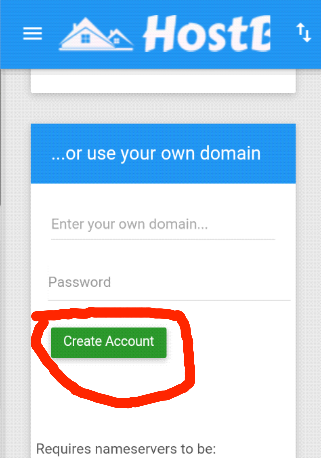 ২)Own ডোমাইন দিয়া হোস্টিং খুলতে প্রথম বক্সে আপনার domain এর নাম তার নিচের বক্সে Password দিয়া Create দিন। তবে আগে আপনার Domain এর nameserver add করতে হবে nameserver অখানে দেওয়া আছে।