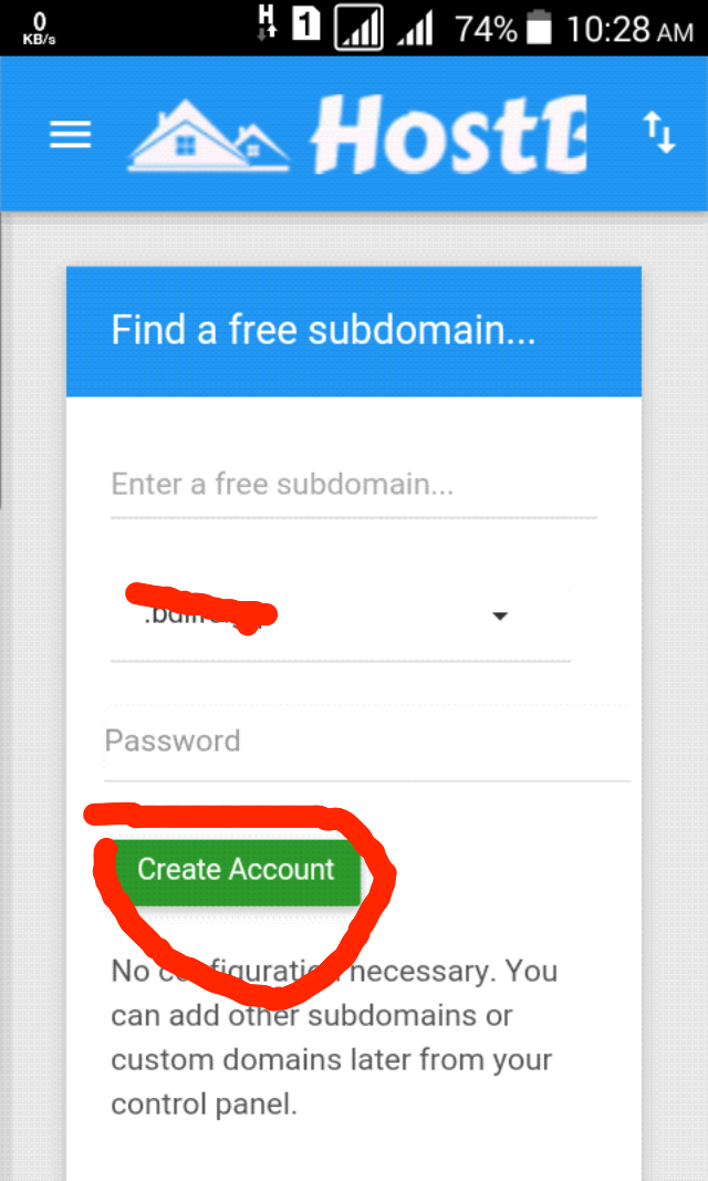 ১)সাব ডোমাইন দিয়া হোস্টিং খুলতে প্রথম বক্সে আপনার সাইট এর নাম তার নিচের বক্সে Password দিয়া Create দিন।