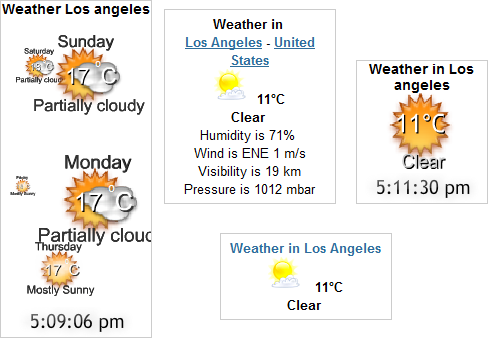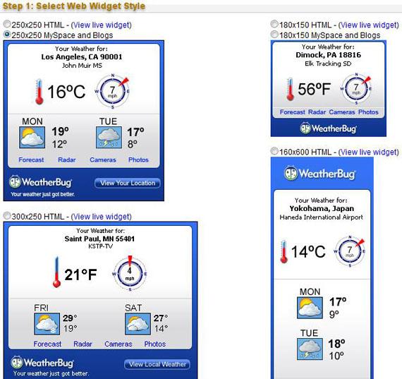 এই widget টি দেখতে সুন্দর এবং এটি ৬ ধরণের সাইজে পাওয়া যায়। কিন্তু এতে রেজিষ্ট্রেশন করা বাধ্যতামূলক। ওয়েব এড্রেস: http://weather.weatherbug.com