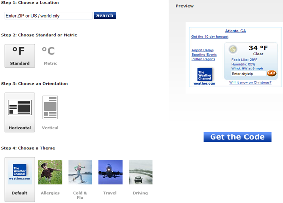 এটি আগের দুটির মতই। কিন্তু এতে কিছু বাড়তি বৈশিষ্ট্য রয়েছে, নিজের পছন্দ অনুসারে লে-আউট ও থীম চয়েস করা যায়। এর ওয়েব এড্রেস: http://www.weather.com/services/oap/weather-widgets.html