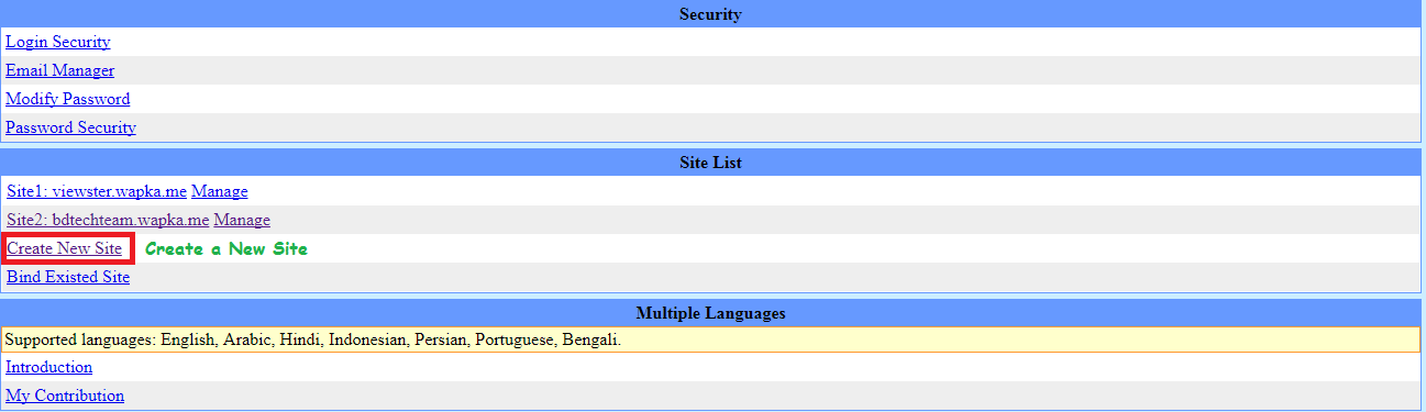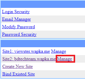 এবার আপনার সদ্য বানানো সাইটটির পাশে "Manage" নামক অপশনটিতে ক্লিক করুন।
