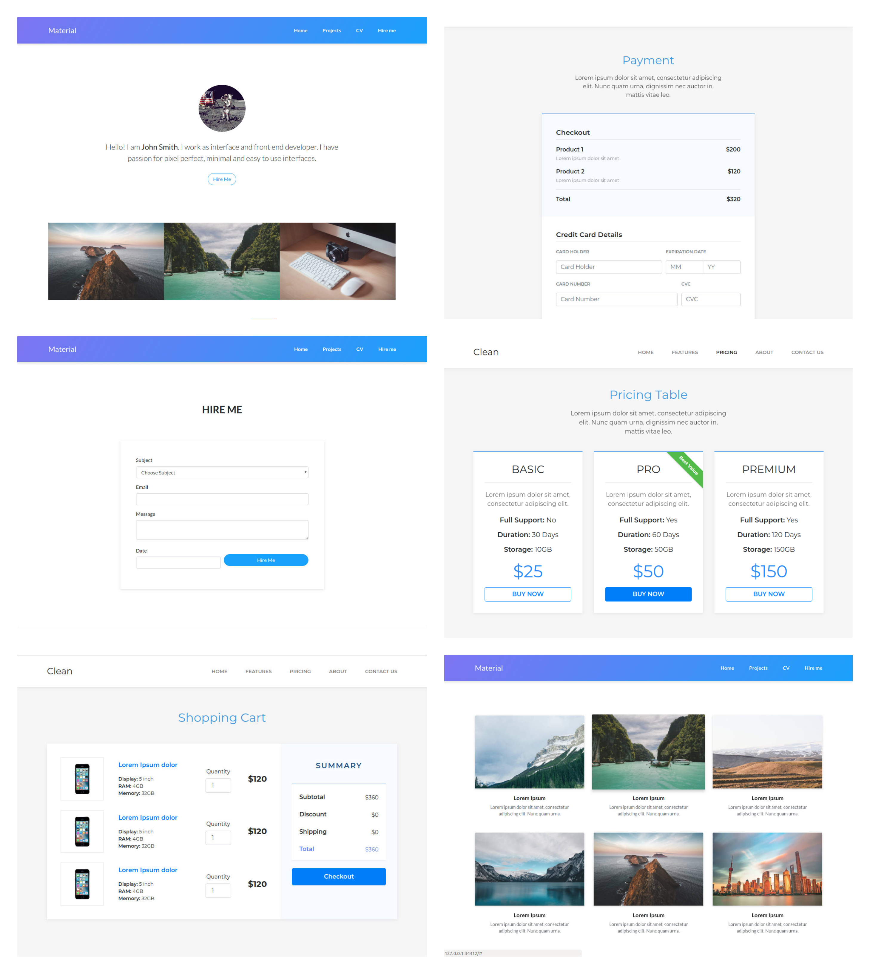Bootstrap Studio রয়েছে অসাধারণ সব প্রিমিয়াম রেস্পন্সিভ টেম্পলেট যা আপনি আপনার ইচ্ছা মত কাস্টমাইজ করতে পারবেন। প্রতিটি টেমপ্লেটে রয়েছে একাধিক পেইজ এবং উইজেট যা আপনাকে নিখুঁত রেস্পন্সিভ ওয়েবসাইট তৈরিতে সাহায্য করবে।