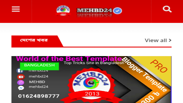আসসালামু আলাইকুম, আমি আজকে আপনাদের সামনে নিয়ে আসলাম এমন একটি ব্লগার টেম্পলেট যেটি সম্পর্কে আপনারা কখনো জানতেন না। এটি ডিজাইন করা হয়েছে চমৎকারভাবে। mehbd24.blogspot.com এই সাইটে এটি ব্যবহার ও ডেবলপ করা হয়েছে। টেম্পলেটটি রেস্পনসিভ, এডস রেডি, দুই কলাম, নিচে তিন কলাম, নিচে একটি ভাসমান বাটন আছে, স্ক্রল বার আছে, ব্যাক টু টপ