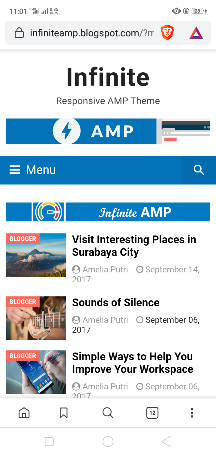 প্রথমে আমরা থিমটির সাথে পরিচিত হয়ে নি। থিমটির নাম Infinite AMP প্রিমিয়াম ব্লগার টেমপ্লেট।