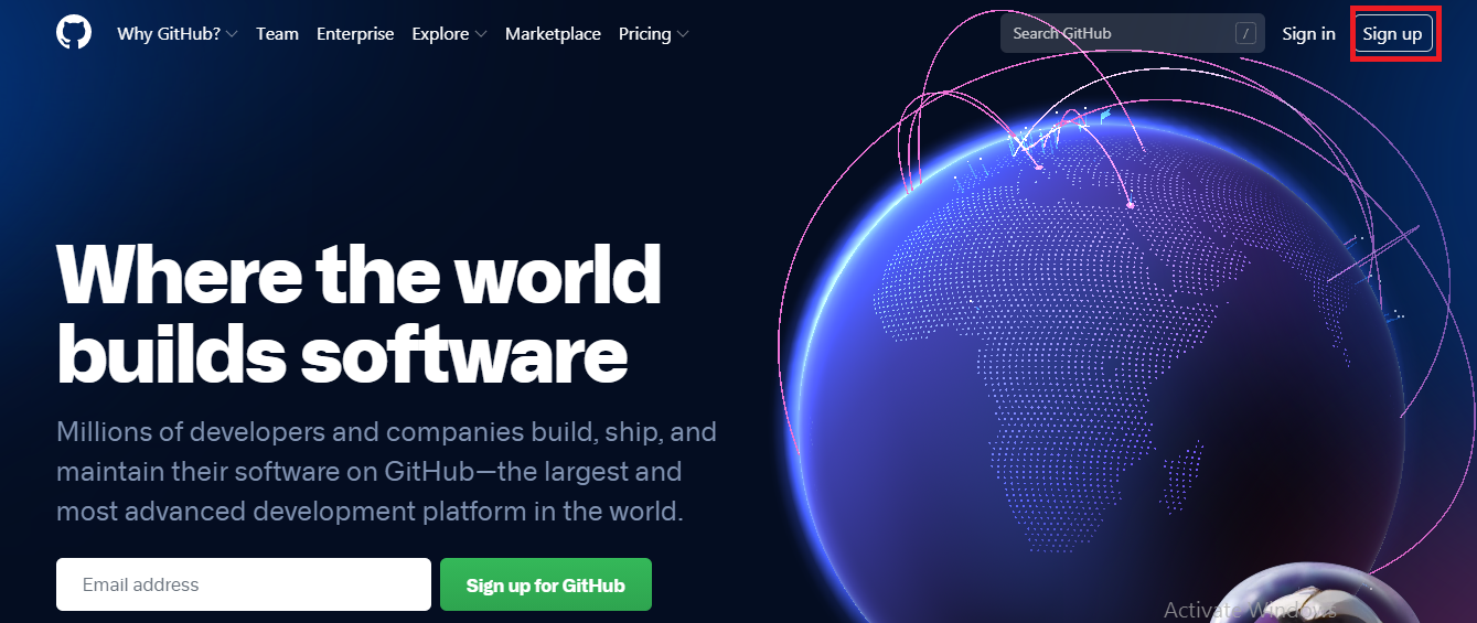 প্রথমে আমাদেরকে গিটহাবে একটা একাউন্ট তৈরি করতে হবে। যাতে করে আমরা আমাদের কোড গুলোকে সেভ করে রাখতে পারি। একাউন্ট তৈরি করার জন্য উপরে থাকা Sign Up বাটনে ক্লিক করুন।