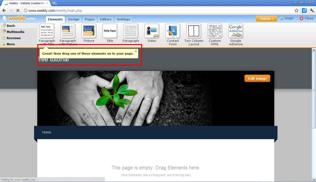 ৫. তারপরে আপনার ড্যাশবোর্ড দেখতে পাবেন। উপর থেকে যে কোন জিনিস ড্রাক করে নিচে বসিয়ে বসিয়ে এখানে কাজ করতে হবে। দেখুন ভরাটকৃত অংশে সে কথাই বলা হচ্ছে।