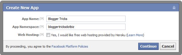 2. আপনার ব্লগে একটি বিবরণ সঙ্গে নতুন অ্যাপ্লিকেশন হিসাবে নীচে দেখানো তৈরি করুন.