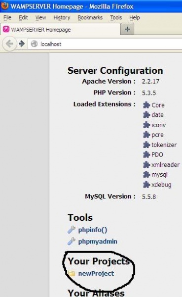 এবার ব্রাউজারটি রিফ্রেশ করুন দেখবেন Your Projects এর নিচে লিখা রয়েছে newPhp.