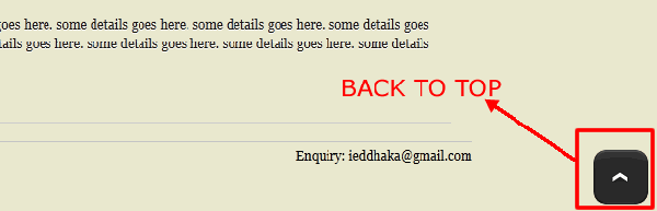 সবাই নিশ্চই লক্ষ্য করেছেন বিভিন্ন ওয়েব সাইটে যে যদি পেজের কনটেন্ট অনেক বেশী হয় তাহলে পুনরায় ঐ পেজের উপরে আসতে আপনাকে স্ক্রল করে আসতে হয় যা সময় সাপেক্ষ এবং বিরক্তিকর ও বটে। আর এটার সমাধানও নিশ্চই দেখেছেন জেকয়েরি দিয়ে সাইটগুলিাতে SCROLL TO TOP/BACK TO TOP লিংক দেওয়া হয় ।