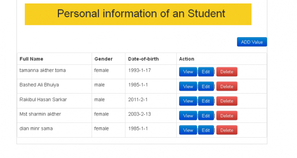 মোট ৪ তা বাটন আছে। Add Value, view,edit,delete নামে। এক একটার কাজ অভিন্ন।