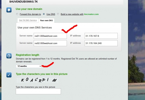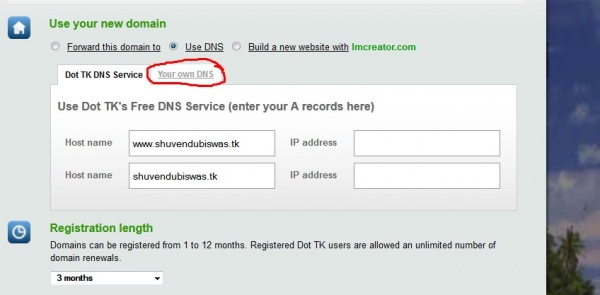 তারপর Nameserver details থেকে information টুকু কপি করুন এবং আগের tab টি ওপেন করুন এবং সেখানে server name ও IP address এক এক করে paste করুন। এরপর registration length ১২ months সিলেক্ট করুন