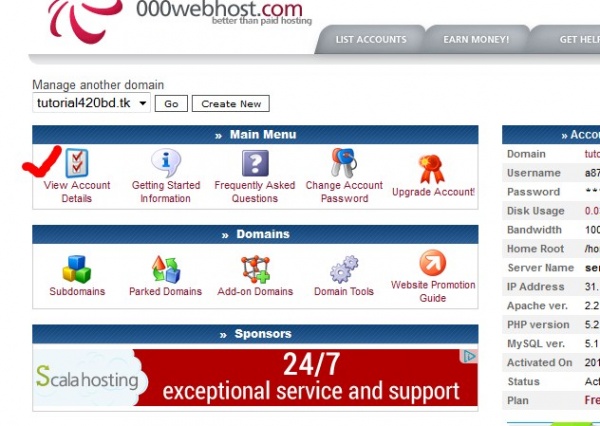 এবার go to Cpanel লিংক এ যান। সেখান থেকে view account details লিংক এ যান।