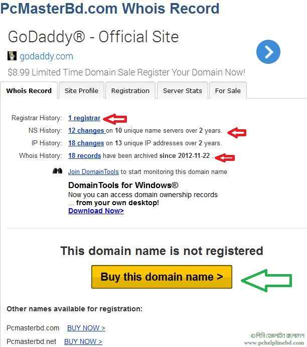 এমনও হতে পারে যে ডোমেইন কেনা হয়েছিলো আগে, কিন্তু তাতে ওয়েবসাইট বানানো হয়নি, সেক্ষেত্রে তেমন সমস্যা হবেনা। ডোমেইন হিস্ট্রি সার্চ করে দেখতে পারেন, আগের রেকর্ড থাকলে এমন কিছু দেখতে পারেন – Registrar History: 2 registrars with 2 drops. NS History: 2 changes on 2 unique name servers over 4 years. IP History: 9 changes on 5 unique name servers over 6 years. Whois History: 2,266 records have been archived since 2002-08-03. Reverse IP: 21 other sites hosted on this server. এইসব না দেখলে তাহলে বুঝবেন একেবারেই নতুন ডোমেইন কিনতে যাচ্ছেন।