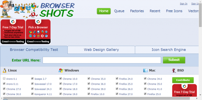 Browsershots টুল ব্যবহার করতে এখানে ক্লিক করুন ।