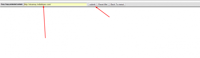 প্রথমে Easy Copy এর এই লিঙ্কে যান, তার পর ছবির মত এই যায়গায় যে সাইট থেকে কপি করতে চান তার ইউ আর এল দিন। ধরুন আমি এই সময়ের সাইট থেকে লেখা কপি করতে চাই... তাহলে এই টেক্সট এরিয়াতে লিঙ্ক দিয়ে সাবমিট বাটনে ক্লিক করলাম... (মনে রাখবেন অবশ্যই লিঙ্ক এর আগে http:// এটা দিতে হবে, না হলে কাজ করবে না)।