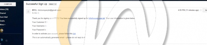 # আপনার মেইল কনফারমেশন মেইল যাবে। আইডি ও পাসওর্য়াড সহ।