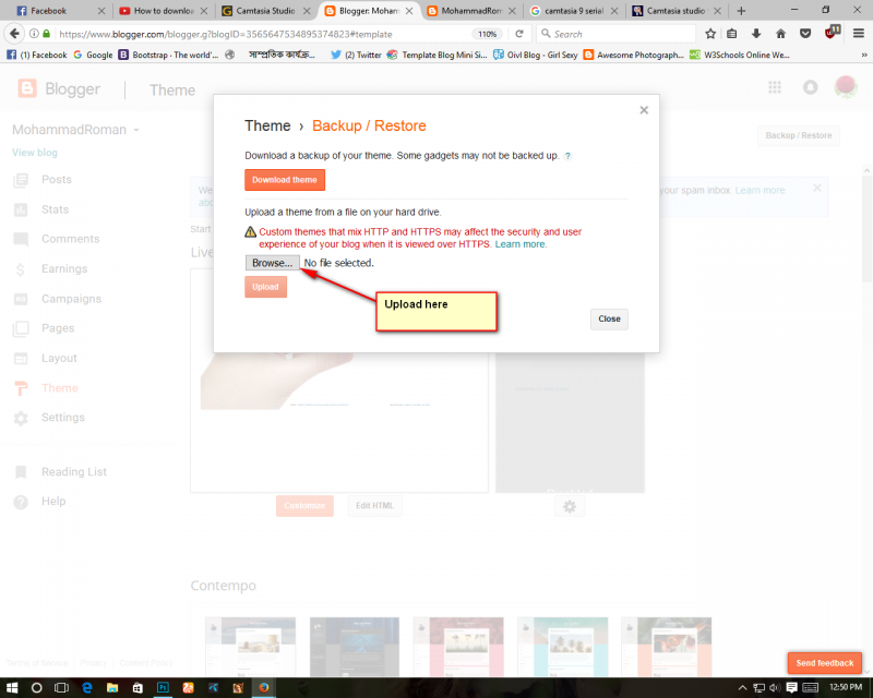 তারপর ব্লগার টেমপ্লেট টি আপলোড করুন