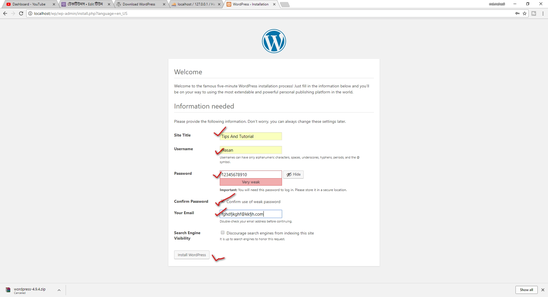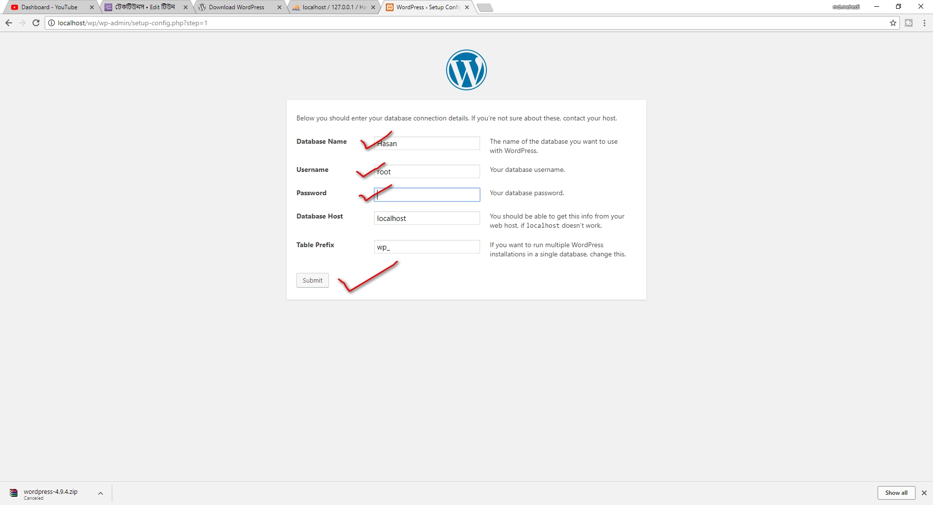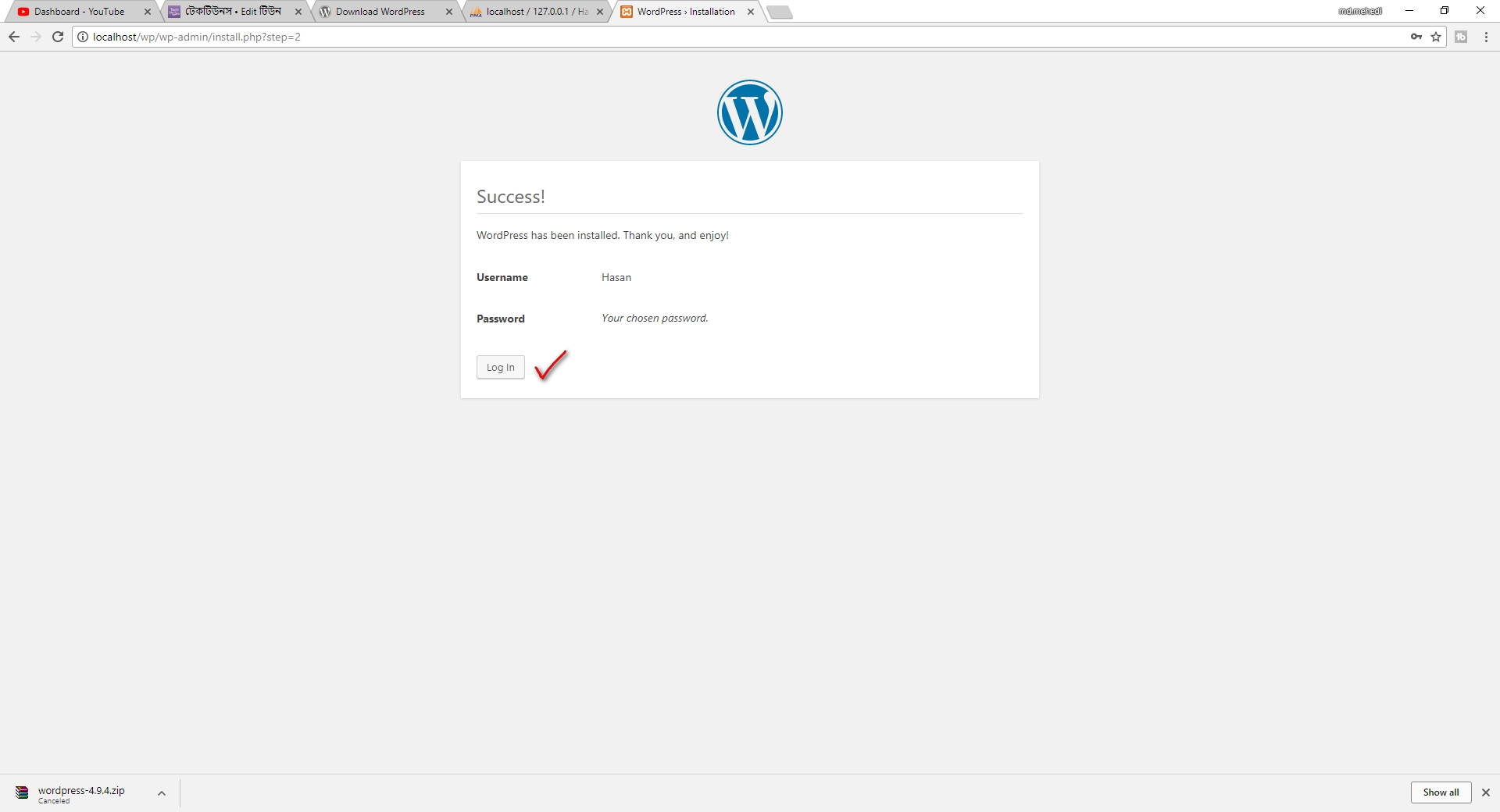 আপনার ব্রাউজার ওপেন করে ব্রাউজারে লিখুন localhost/wp এবং নিচের ধাপ অনুসরন করুন।