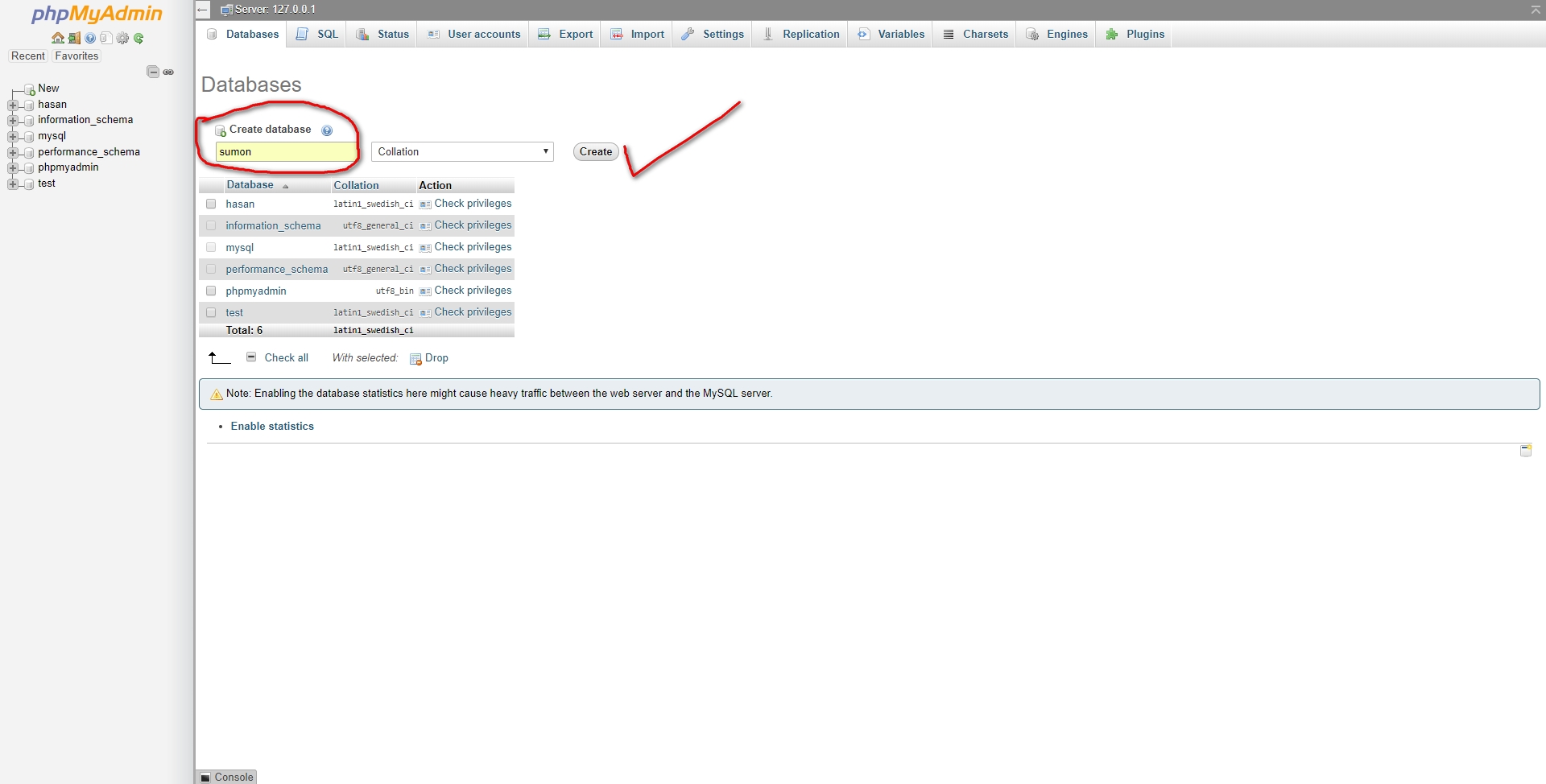 Create Database আপনার নাম লিখুন। তারপরে Create এ ক্লিক করুন।