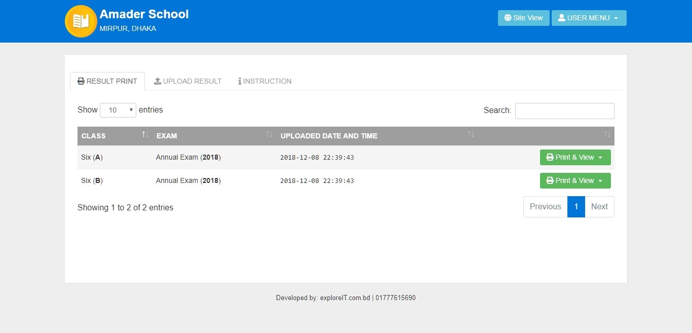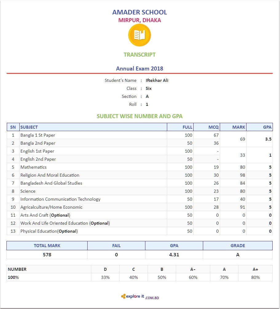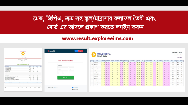 গ্রেড, জিপিএ, ক্রম সহ স্কুল/মাদ্রাসার বার্ষিক পরীক্ষা ২০১৮ এর ফলাফল তৈরী এবং বোর্ড পরীক্ষার আদলে প্রকাশ করতে লগইন করেুনhttp://result.exploreeims.com
