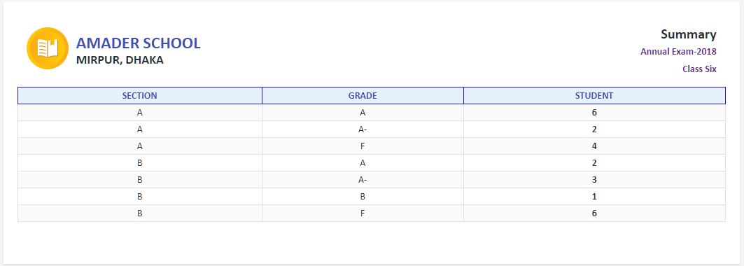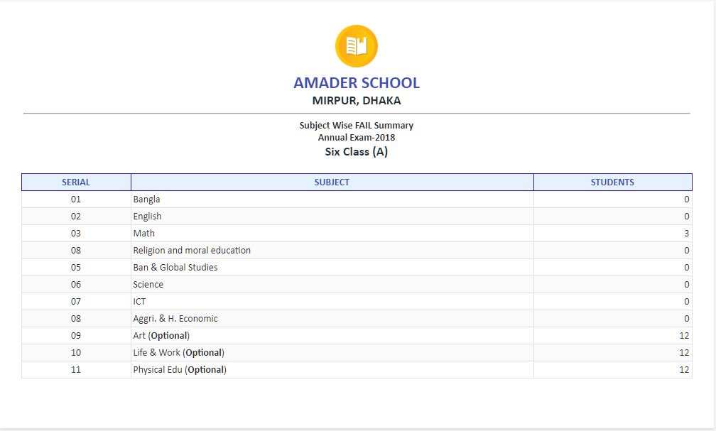 • ফলাফল সামারী ইত্যাদি তালিকা গুলো প্রিন্ট করা যায়