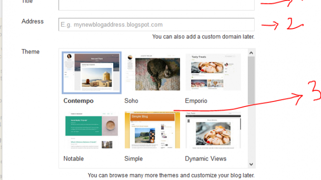 ৩. create new blog-এ ক্লিক করে, blog title, blog address দিয়ে blog theme select করুন। আপনি কি নিয়ে আপনার ব্লগসাইট বানাবেন সেই টাইপের title ও blog address লিখুন। তবে যে subject গুলো বর্তমানে "trading" -এ চলছে এবং যেগুলো খুব তাড়াতাড়ি grow করবে সেগুলো হলঃ software download, news, Technology, health and fitness, movie review and download, beauty tips, cooking etc. এগুলোর যেকোনো একটি select করে নিজের ব্লগ তৈরি করুন। ১০০% sure আপনার ব্লগ খুব তাড়াতাড়ি google সার্চ engine-এ rank করবে। নীচের মতো option এলে no thanks -এ ক্লিক করুন।
