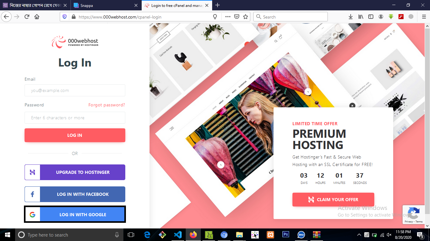 ফ্রিতে ডোমেইন এবং হোস্টিং অনেক কোম্পানীই দিয়ে থাকে তার মধ্যে জনপ্রিয় হচ্ছে 000webhost.com। আজকে এই ওয়েব সাইট থেকে আপনাদের ডোমেইন এবং হোস্টিং নিয়ে দেখাবো। ডোমেইন নেওয়ার জন্য প্রথমে এখানে ক্লিক করুন। তারপর নিচের মতো একটি লগিন পেজ দেখতে পাবেন।