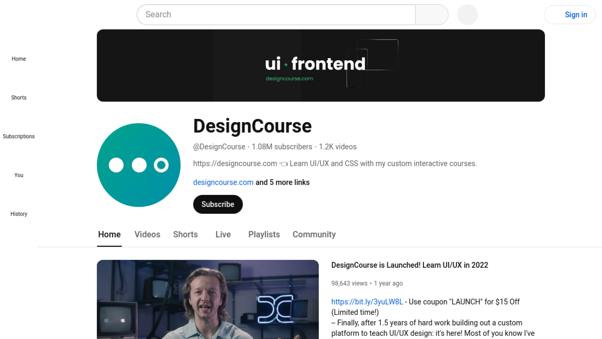 যা সত্যি একজন নতুন ইউজারের জন্য অনেক বেশি গুরুত্বপূর্ণ ভূমিকা রাখে। DesignCourse ইউটিউব চ্যানেলে এখন পর্যন্ত মোট 1.1K ভিডিও রয়েছে। চ্যালেনটির বর্তমান সাবস্ক্রাইব রয়েছে 1.06M. আপনি চাইলে আজকে থেকে এতো জনপ্রিয় একটি ইউটিউব চ্যানেল থেকে ওয়েব ডিজাইন শেখা করতে পারেন।