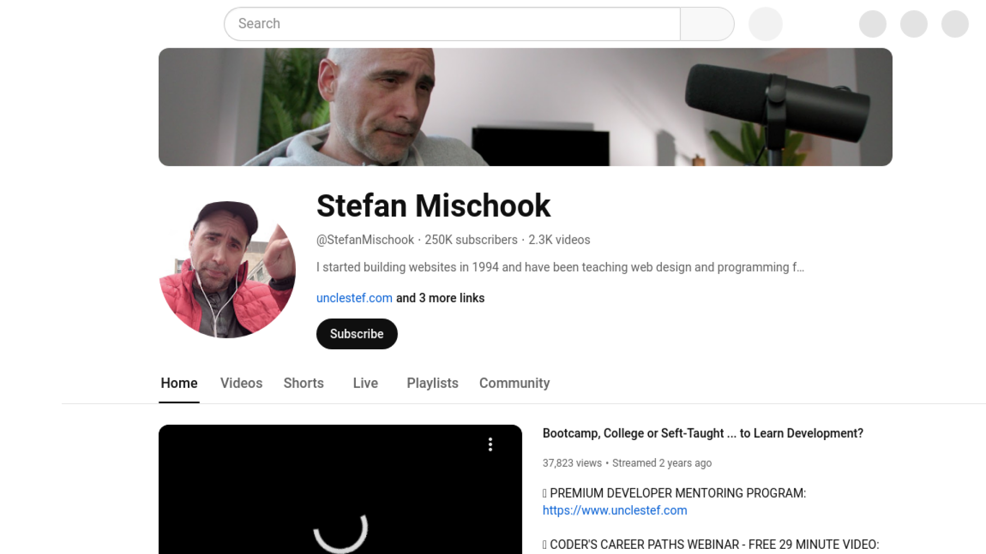 Stefan Mischook একজন ওয়েব ডেভেলপমেন্ট এবং প্রোগ্রামিং শেখানোর জন্য জনপ্রিয় অথবা অনেক বেশি পরিচিত একটি ইউটিউব চ্যানেলেন মালিক। তার চ্যানেলে মূলত ওয়েব ডেভেলপমেন্ট, ওয়েব ডিজাইন, প্রোগ্রামিং ভাষা সম্পর্কিত বিভিন্ন টিউটরিয়াল ভিডিও পাওয়া যায়। তার ভিডিও ব্যাখ্যাগুলি মূলত যারা নতুন ওয়েব ডেভেলপমেন্টে বা যারা নতুন লার্নার তাদের উদ্দেশ্য করে বানানো হয় অথবা ডিজাইন করা হয়।