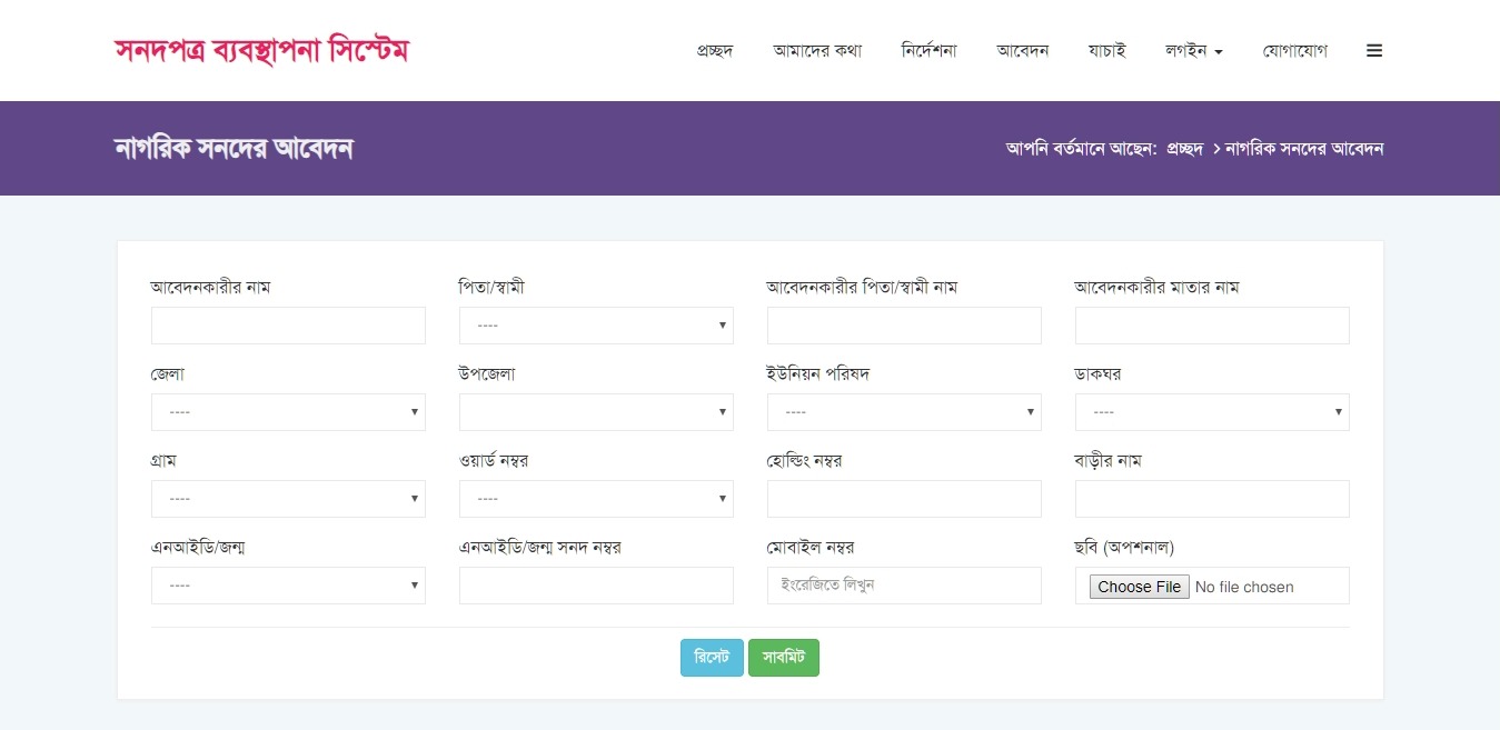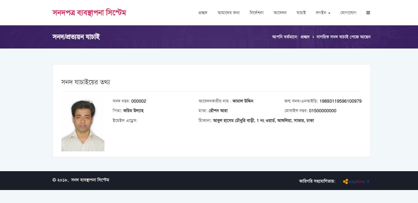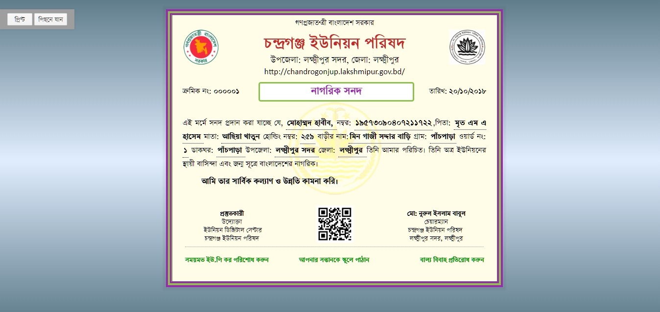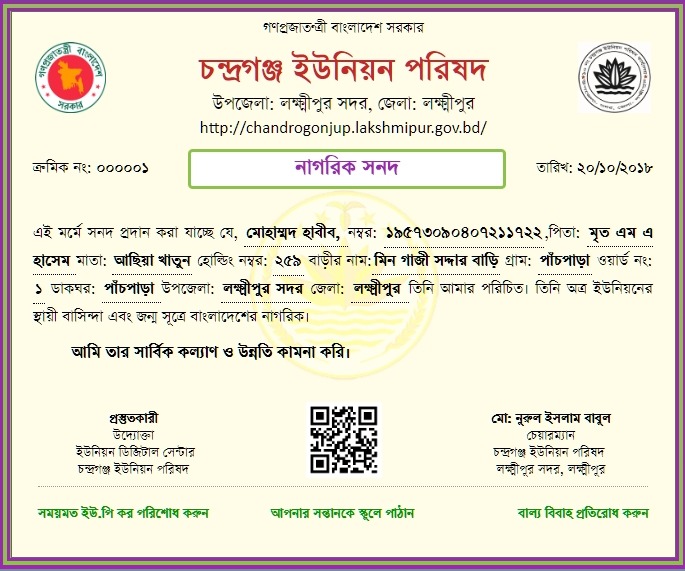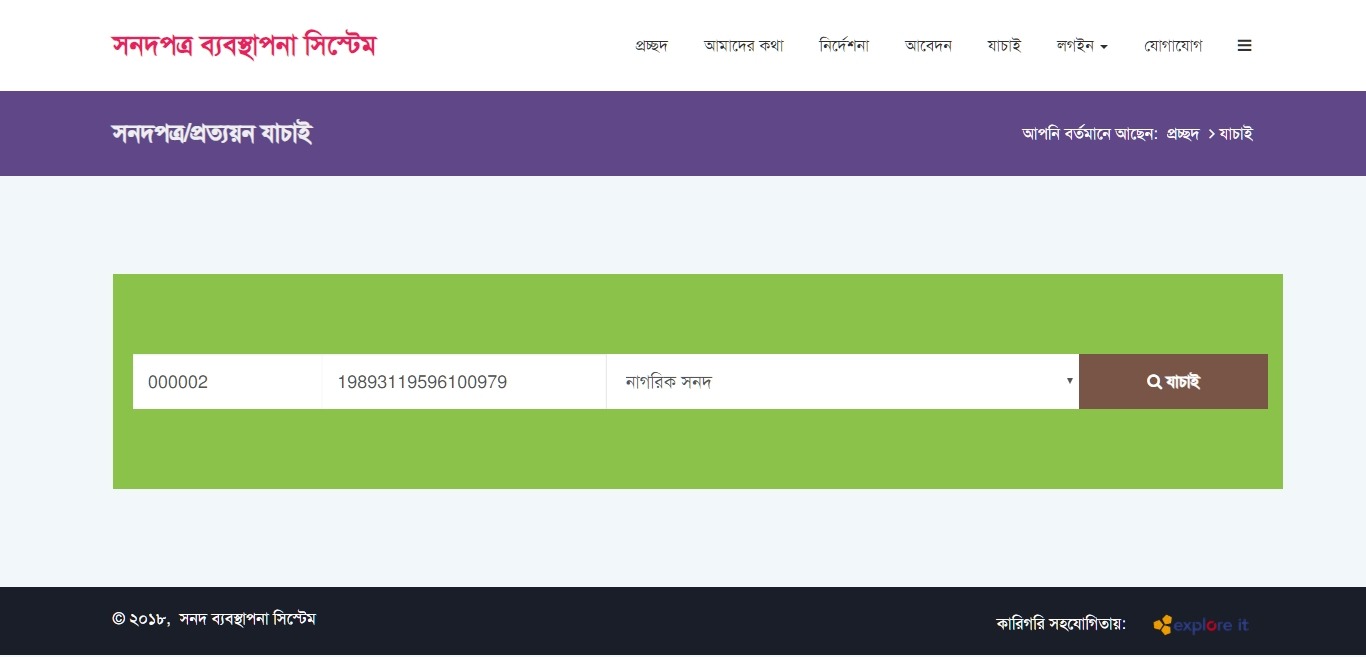 নাগরিক সনদ(ইংরেজি) যাচাই