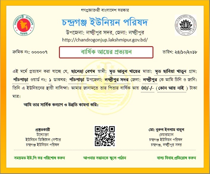 বার্ষিক আয় প্রত্যয়ন তৈরী