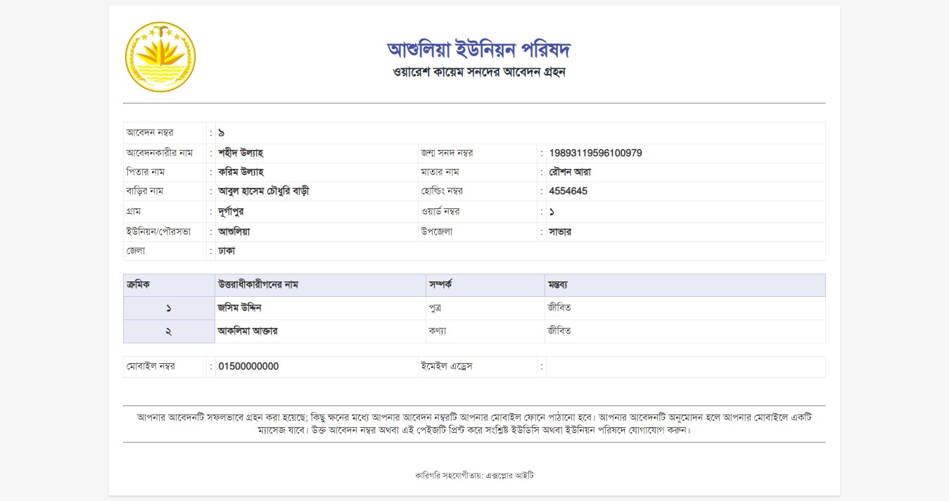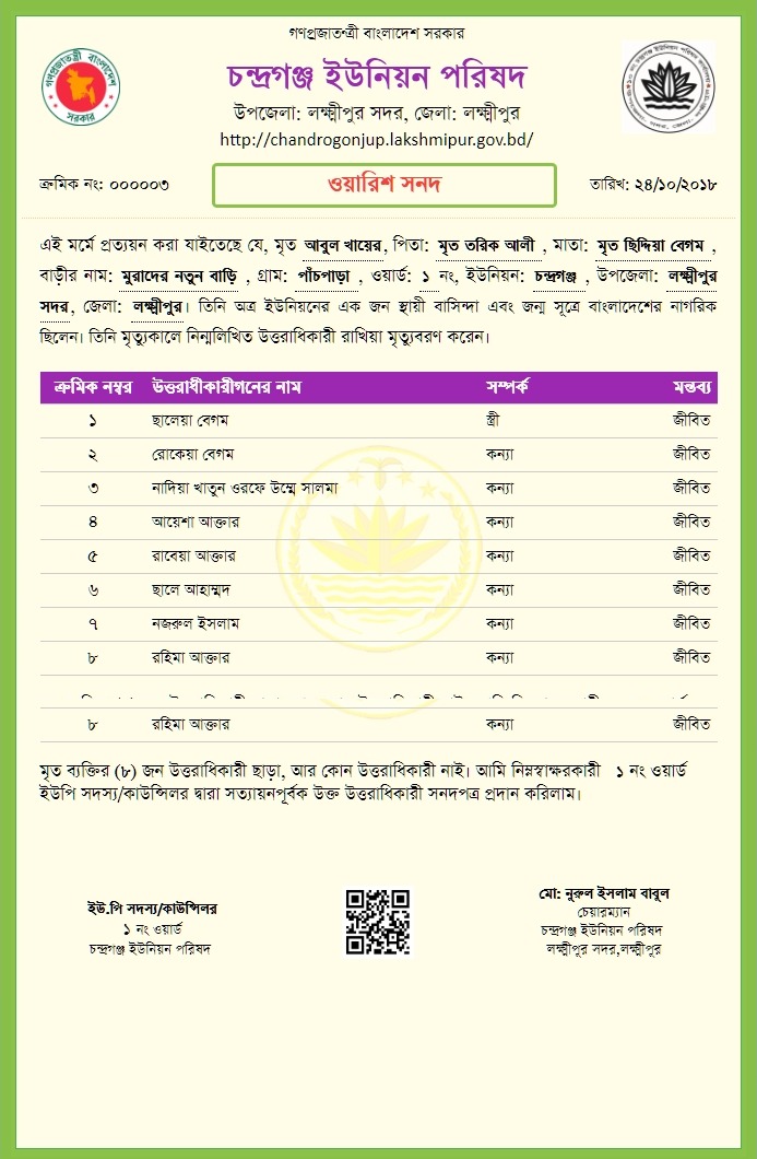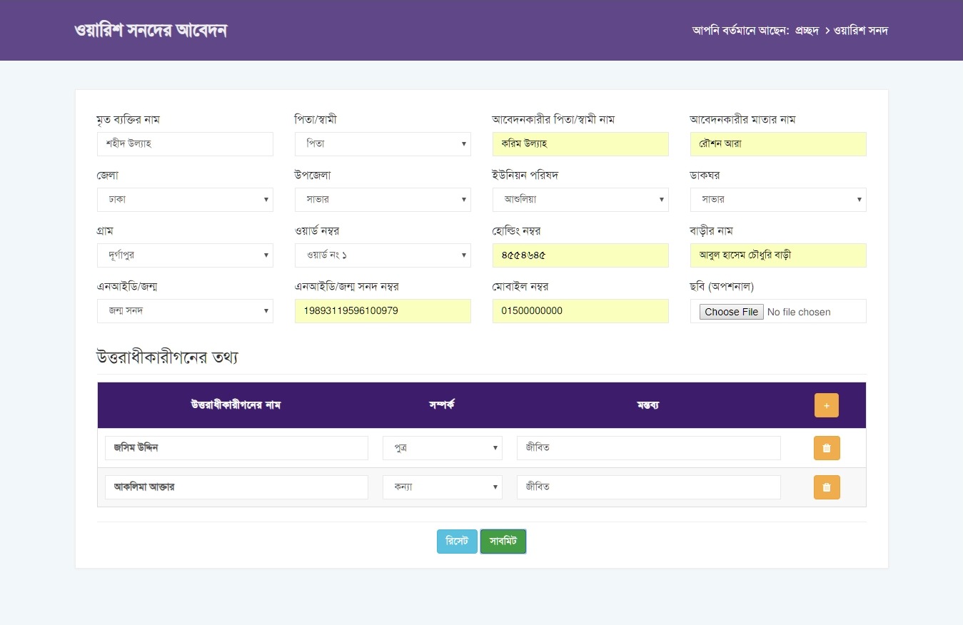 ওয়ারিশ সনদ(ইংরেজি) যাচাই