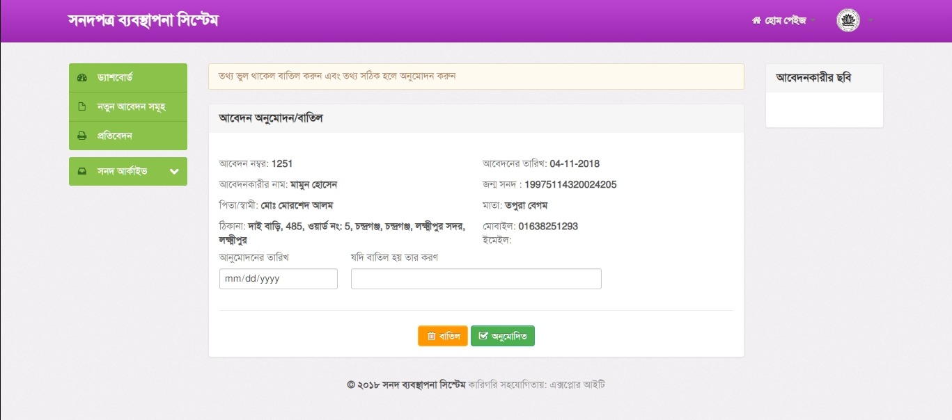 স্থায়ী বাসিন্দা সনদ যাচাই