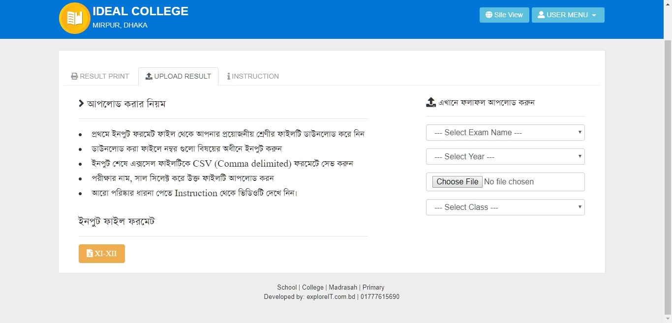 o ফলাফল সামারী ইত্যাদি তালিকা গুলো প্রিন্ট করা যায়