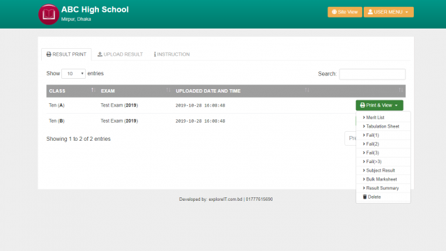 স্কুল, কলেজ, মাদ্রাসা, প্রাথমিক বিদ্যালয়ের পরীক্ষার ফলাফল তৈরী ও অনলাইনে এবং মোবাইল অ্যাপে প্রকাশ করুন