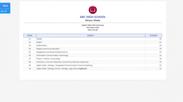 • ফলাফল সামারী ইত্যাদি তালিকা গুলো প্রিন্ট করা যায়