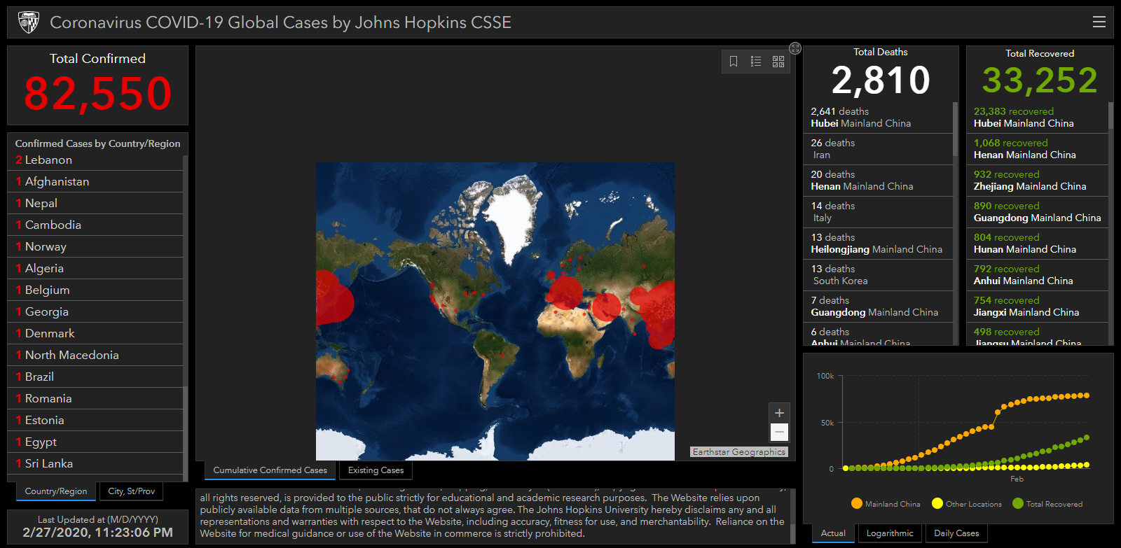 এই ম্যাপটি আপনাকে সারা বিশ্বে করোনা ভাইরাস সংক্রমিত হবার তথ্য দেবে। আপনি চাইলে সংক্রমিত এলাকাও এই ম্যাপের মাধ্যমে দেখতে পারেন। পূর্ব সতর্কতার দরুন, আপনি কোথাও ভ্রমণ করতে চাইল আগেই করোনা ভাইরাস আক্রান্ত জায়গা চিহ্নিত করে নিতে পারেন। এই ভাইরাস থেকে বাঁচতে কাশি দেওয়ার সময় হাত দিয়ে মুখ ঢেকে নিন, এবং পরবর্তীতে হাত ধুয়ে নিন, বাইরে বের হলে মাস্ক ব্যবহার করুন এবং আক্রান্ত ব্যক্তি থেকে দূরে থাকুন।