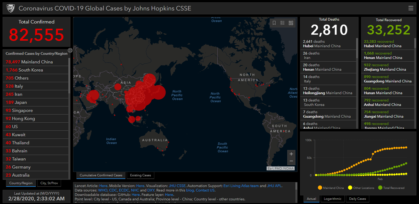 করোনা ভাইরাস রিয়েল টাইম ম্যাপ @ কম্পিউটার ভার্সন
