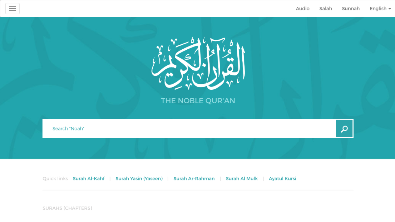 Noble Quran হচ্ছে অনলাইন প্ল্যাটফর্ম যেখানে আপনি ইংরেজিতে কুরআনের অনুবাদ পড়তে পারবেন। আপনি এই ওয়েব সাইটের বাম পাশে পুরো কুরআনের সূরার লিস্ট পাবেন। এছাড়াও আপনি সহজেই স্ক্রল করে বিভিন্ন সূরাতে যেতে পারবেন।