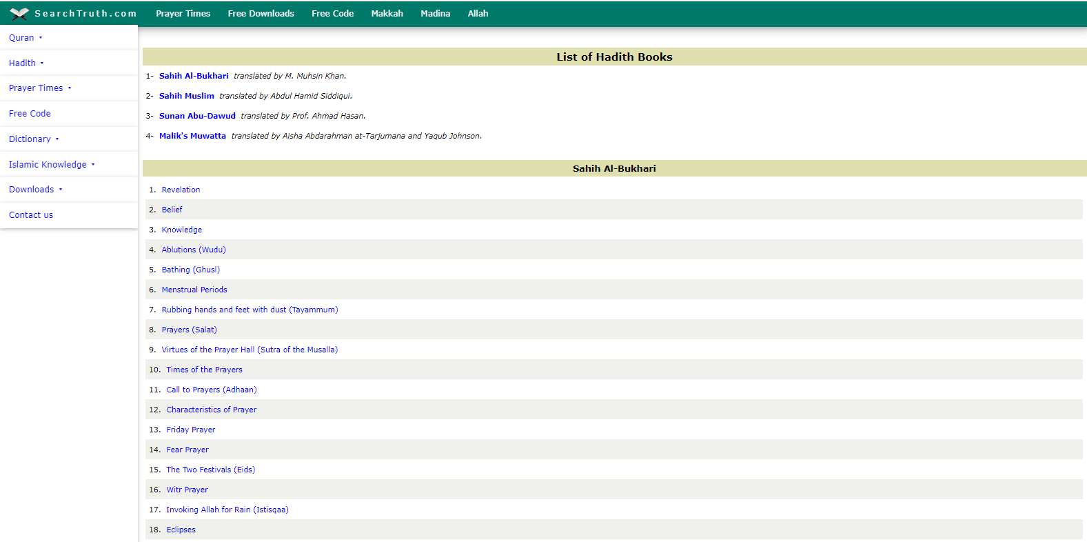 অনলাইনে হাদীস পড়ার আরেকটি ওয়েবসাইট হচ্ছে Search Truth। এই ওয়েবসাইটের মাধ্যমে আপনি এক সাথে একাধিক কাজ করতে পারবেন যেমন অনলাইনে কোরআন পড়া, নামাজের টাইম, হিজরি ক্যালেন্ডার, আরবি ডিকশনারি।